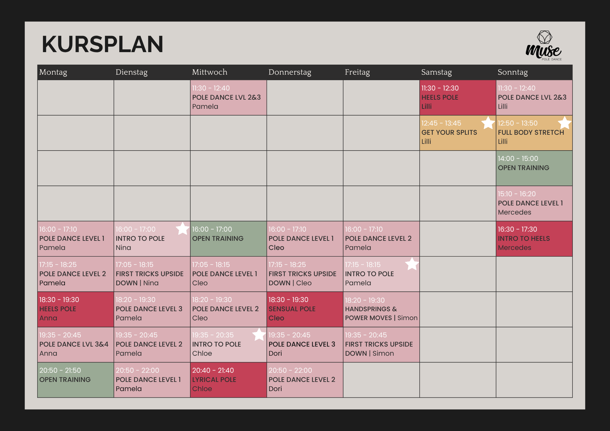 Kursbesuche müssen im Vorraus über das Buchungssystem gebucht werden!